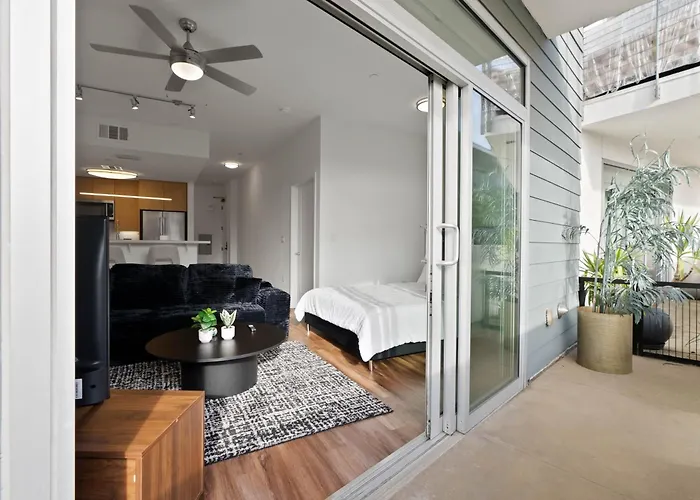 Featuring a private swimming pool, Mid-Wilshire Studio Free Parking, Pool, Gym Los Angeles hotel is merely a 6-minute walk from the Petersen Automotive Museum.